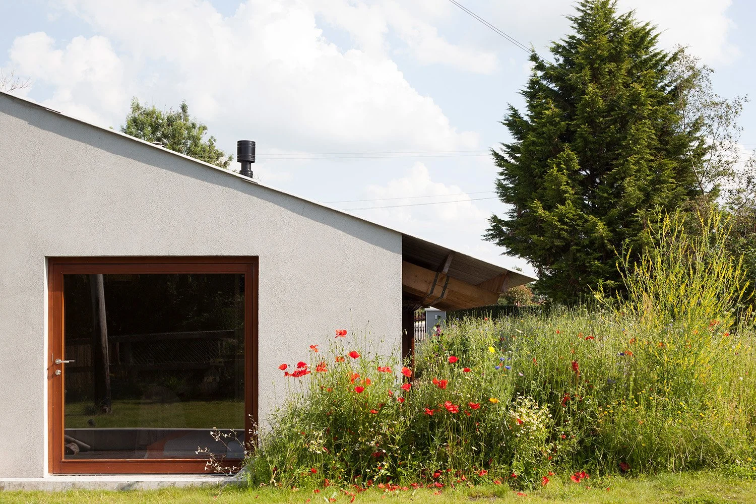 our approach was to turn the limitation on the scale of any additions to the advantage of making a connection between the new living spaces and the landscape. the new additions were partially sunken into the land so that their overall bulk was diminished.